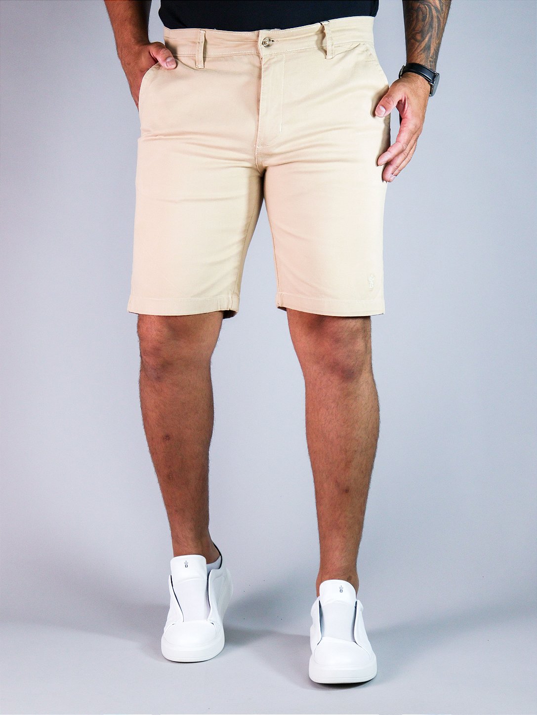Esta bermuda combina conforto, durabilidade e estilo: Sarja peletizada: Proporciona um toque macio e um caimento impecável no corpo. Liberdade de movimento: O elastano na composição garante que você fique confortável o dia todo.