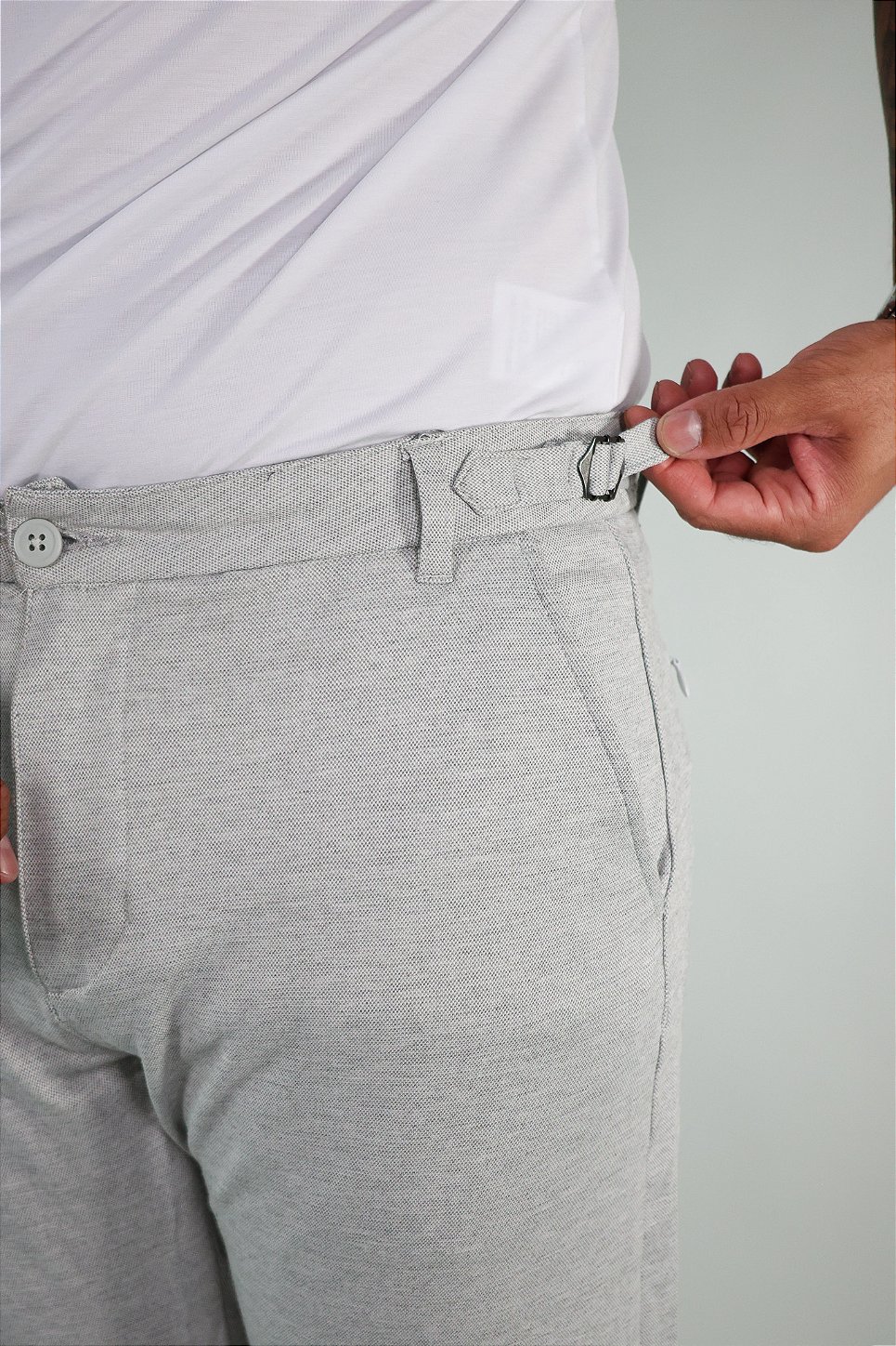 Confeccionada em tecido encorpado de toque macio, com leve elasticidade que garante conforto e liberdade de movimento. Possui cós com reguladores laterais ajustáveis, dispensando o uso de cinto, além de fechamento frontal com botão e zíper. Acabamentos precisos que elevam o padrão da peça.