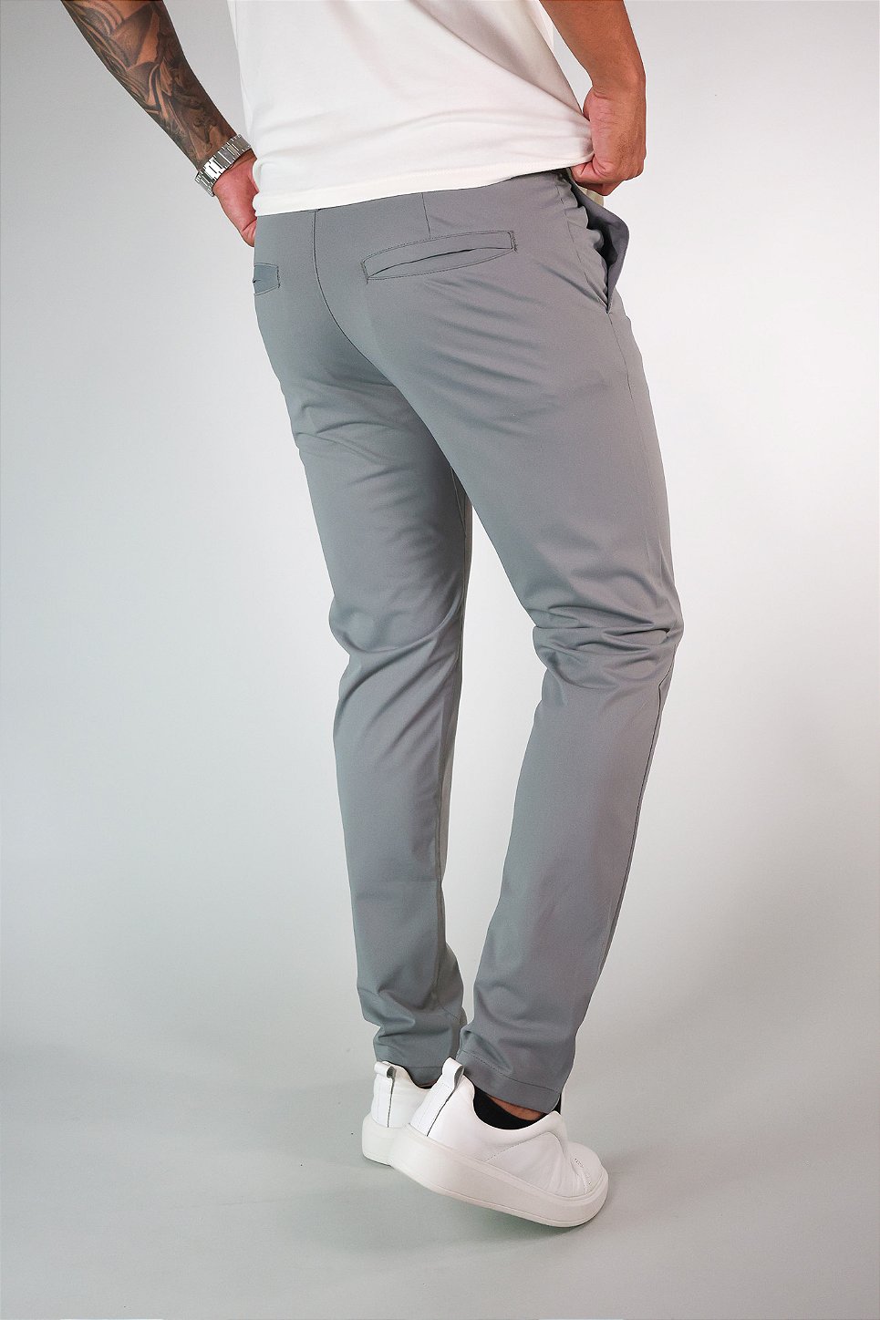 Com modelagem slim de alfaiataria moderna, ela acompanha a silhueta com elegância, sem apertar. Possui bolsos discretos e cós com fechamento clássico, trazendo sofisticação e versatilidade para combinar com camisetas, camisas ou até um blazer leve.