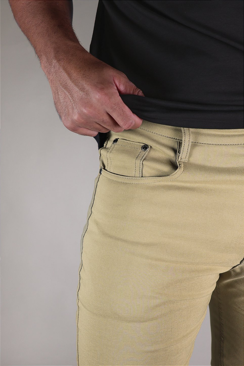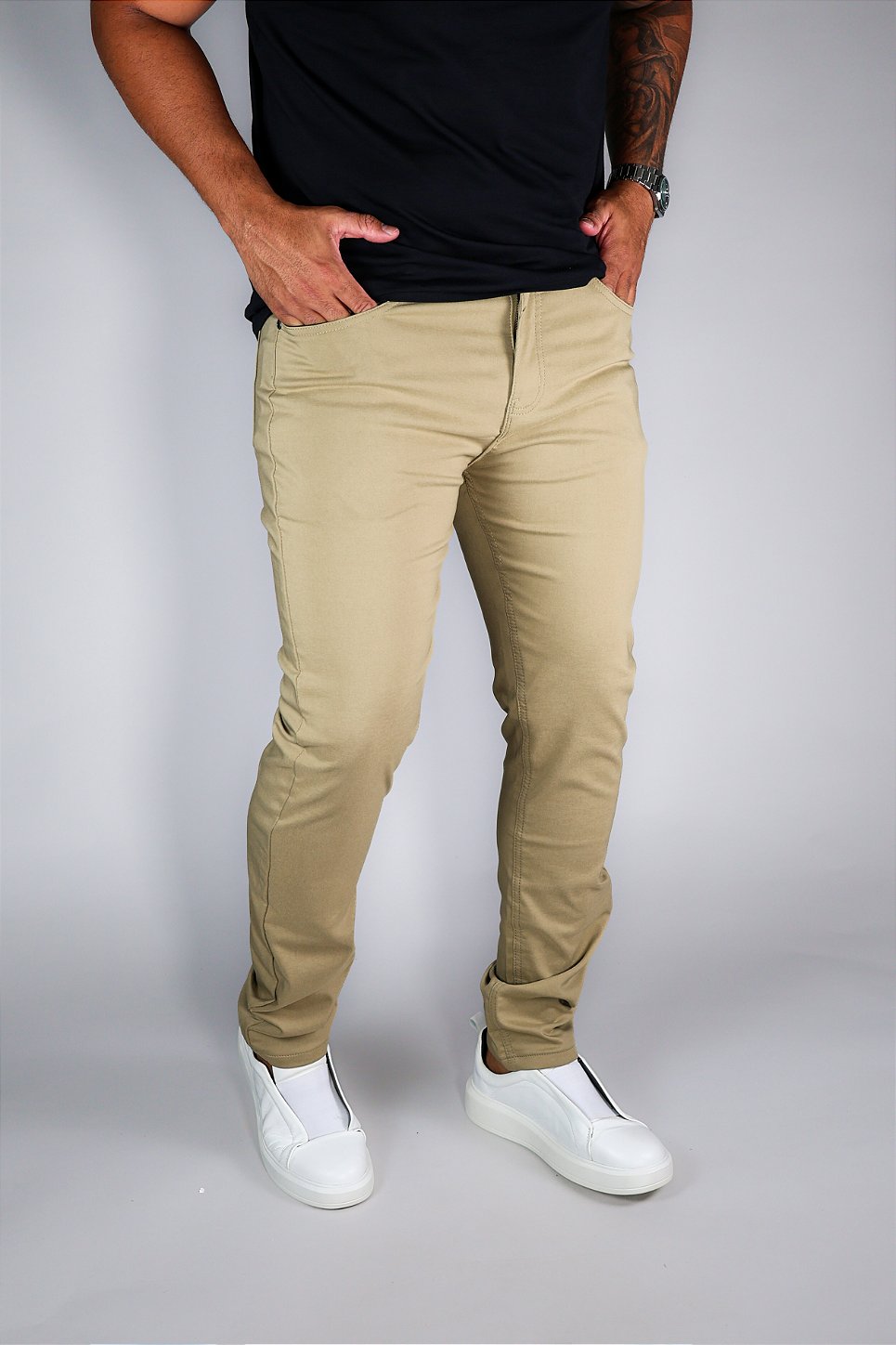 Nas cores Preta, Chumbo e Bege, combina com qualquer parte de cima — de camisetas básicas a camisas mais elegantes.