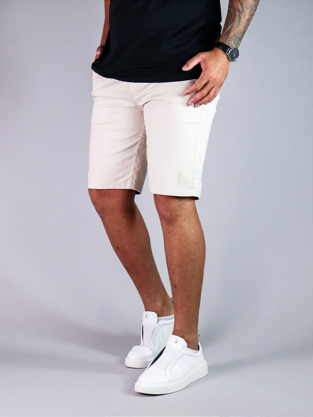 Kit Bermuda Sarja Areia + Camiseta Cotton Pima Preta Bruder