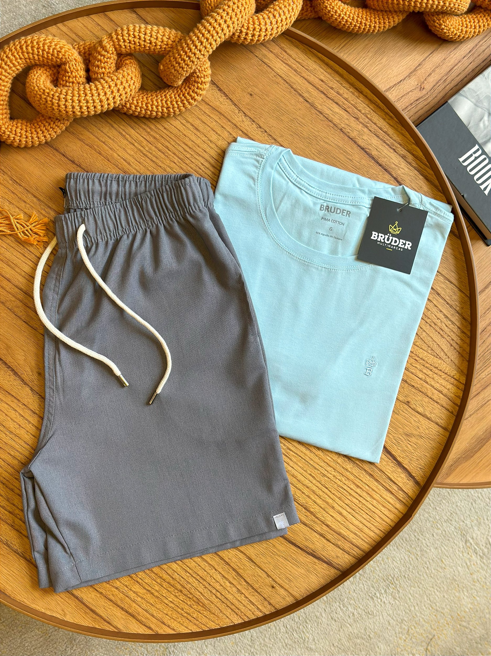 Kit Shorts Linho + Camiseta Cotton Pima Bruder